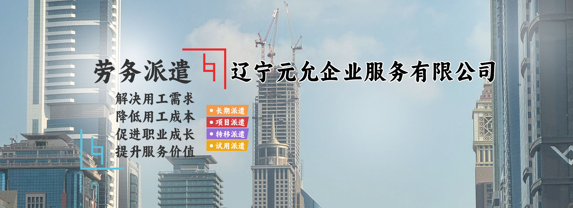遼寧元允企業(yè)服務(wù)有限公司,是一家經(jīng)人力資源和社會保障部批準(zhǔn),為客戶提供人力資源整體服務(wù)方案的服務(wù)機(jī)構(gòu)。服務(wù)內(nèi)容包涵薪酬外包、勞務(wù)派遣、勞務(wù)外包、人事代理、獵聘服務(wù)、財務(wù)外包、崗位外包、靈活用工、業(yè)務(wù)外包、工傷風(fēng)險外包、培訓(xùn)外包、勞動關(guān)系管理、企業(yè)管理咨詢等相關(guān)領(lǐng)域的外包服務(wù)。同時也廣泛拓展、承接商務(wù)代理、會議策劃、簽證代理、員工福利外包、法務(wù)咨詢及代理(勞動關(guān)系相關(guān))等綜合服務(wù),多重廣泛的業(yè)務(wù)類型,為客戶提供企業(yè)發(fā)展服務(wù)平臺。 公司自成立以來一直以聚焦客戶需求,敬業(yè)勝任服務(wù) 作為公司經(jīng)營服務(wù)理念。為合作客戶提供可靠、滿意的人力資源解決方案,引導(dǎo)企業(yè)更專注于核心業(yè)務(wù)的發(fā)展,聚資源...